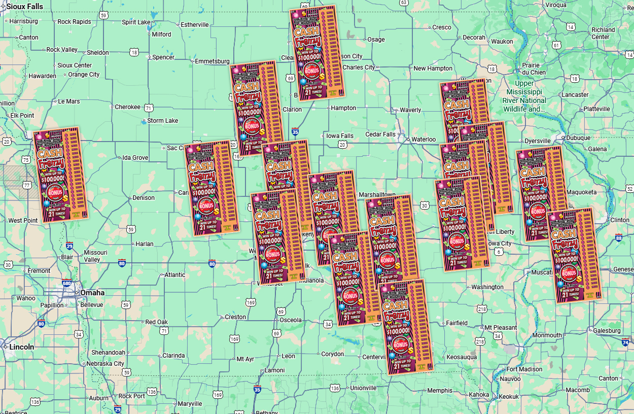 See a map of where the CASH FRENZY Scratch Tickets Pop-up Contest
