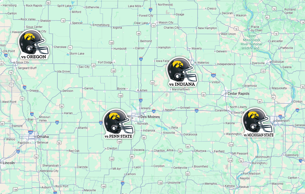 of where the Hawkeye BLACKOUT Penn State Ironmen Suite winners are located.