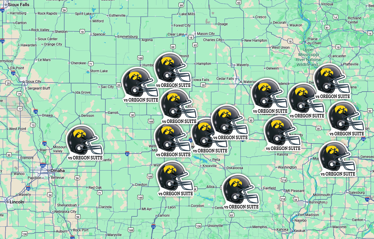 of where the Hawkeye BLACKOUT Oregon Ironmen Suite winners are located.