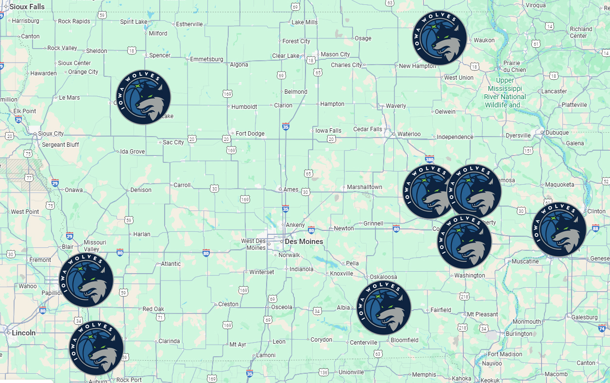 See a map of where the Iowa Wolves Basketball is Back Pop-up Contest winners are located.